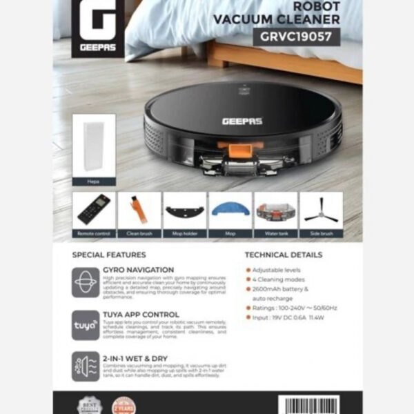 جارو رباتیک دو کاره جیپاس مدل 19057 Geepas 19057 2-in-1 Robotic Vacuum