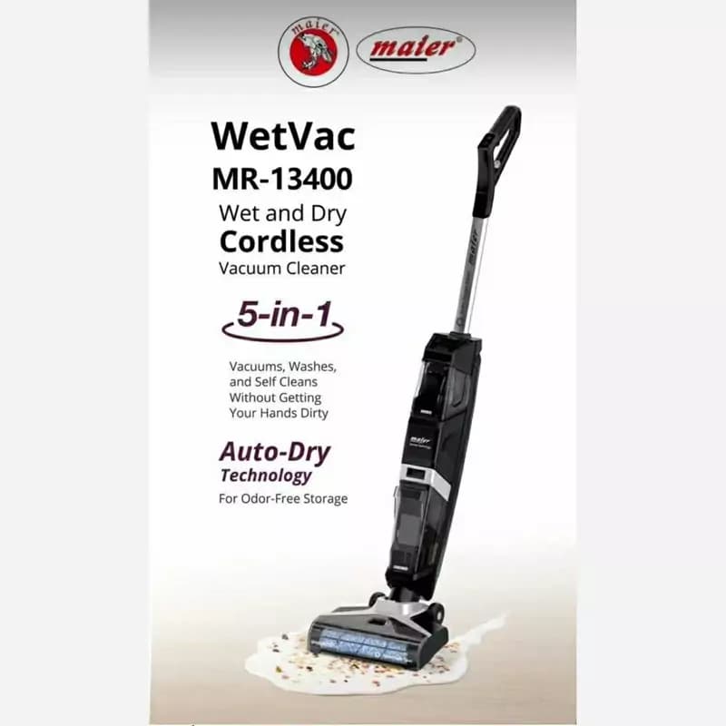 جارو شارژی و زمینشوی 5 کاره مایر MR-13400 یک دستگاه همهکاره برای نظافت مدرن است. این محصول با طراحی بیسیم، عملکرد شستشو، جاروکشی، خشک کردن، زمینشویی و خودتمیزکنندگی را همزمان ارائه میدهد. فناوری Auto-Dry باعث خشکشدن سریع سطوح میشود و امکان استفاده روی فرش، موکت، مبل و کفهای سخت را فراهم میکند.