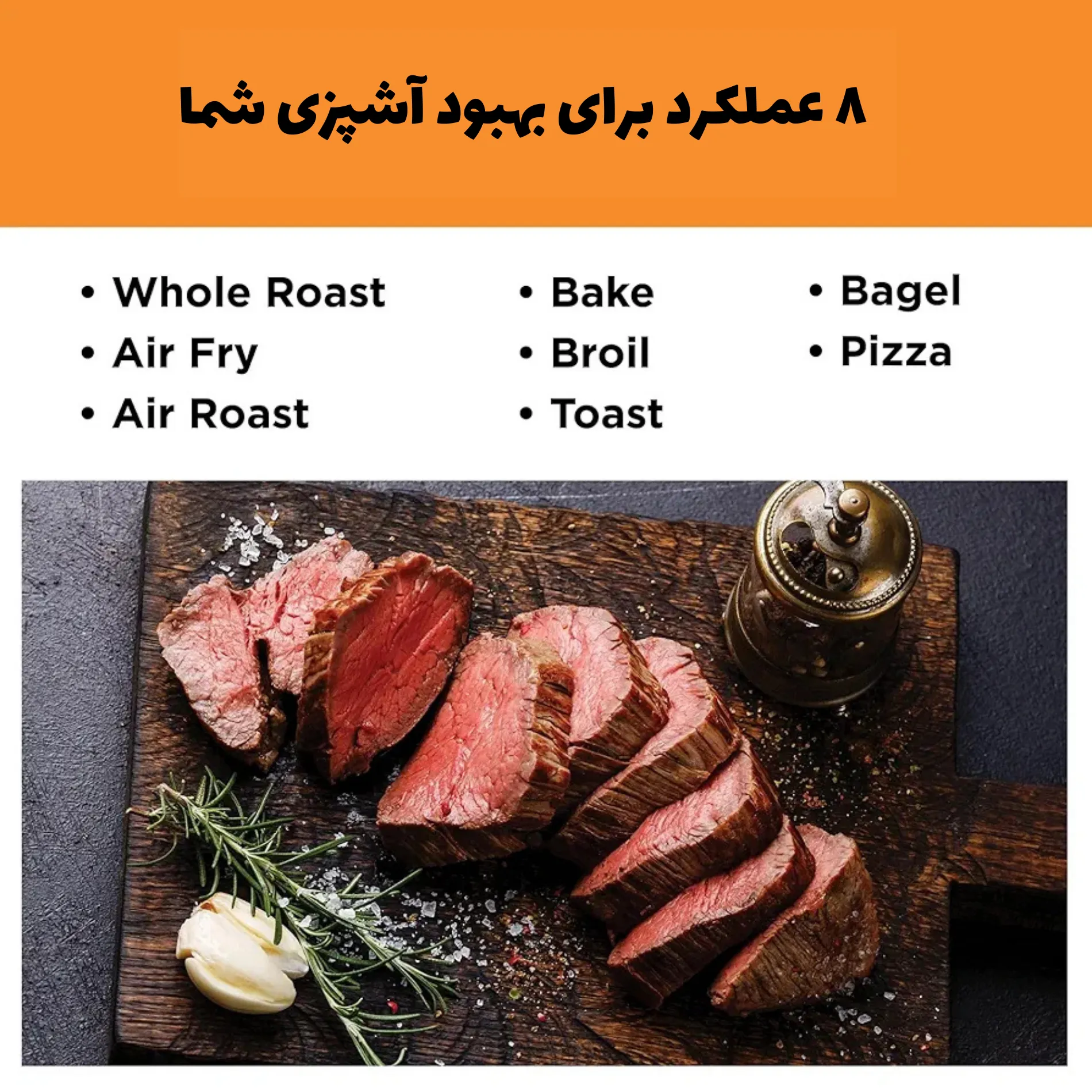 - ✔️ پخت چندمنظوره: پیتزا، مرغ، کیک و غذاهای تنوری