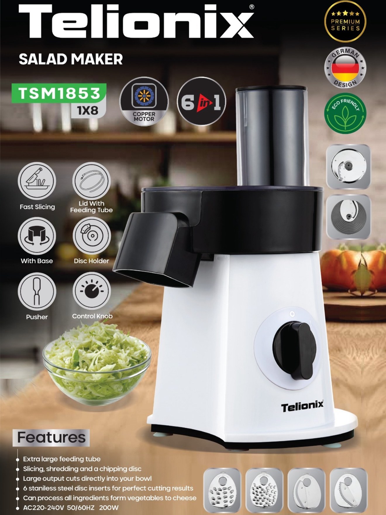 سالادساز ۶ تیغه تلیونیکس مدل 1853 یک ابزار کاربردی و قدرتمند برای آمادهسازی سریع انواع سالاد،