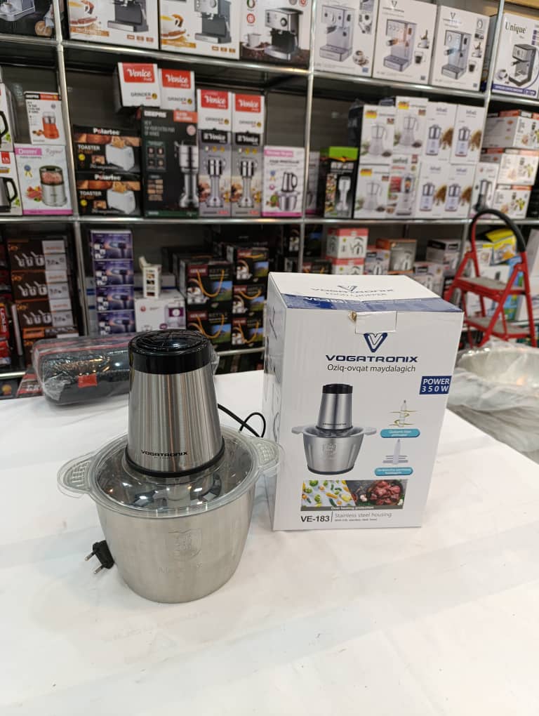 خردکن وگاترونیکس استیل مدل VE-183 با موتور 450 وات و تیغه‌های استیل ضدزنگ، مناسب برای خرد کردن مواد مختلف مانند سبزیجات، میوه‌ها و گوشت. دارای قفل ایمنی و طراحی جمع و جور.